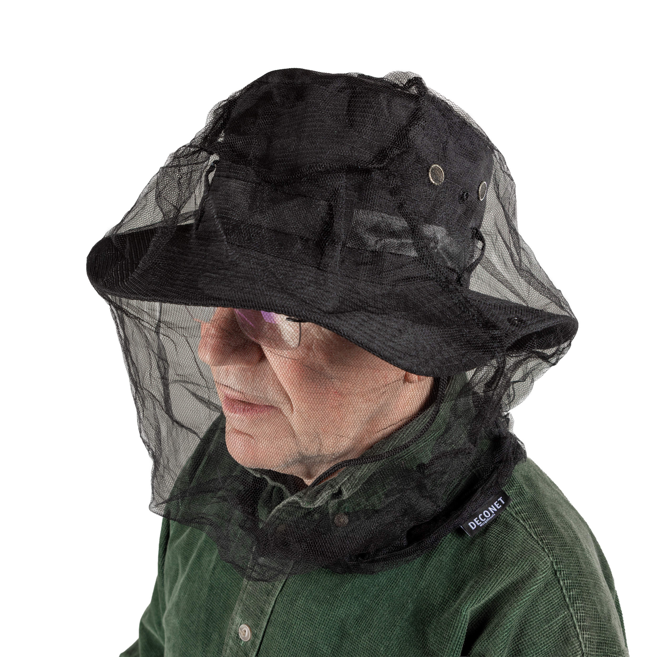 Het hoofdnet kan rechtstreeks over het hoofd worden gedragen en sluit door het lichte gaas comfortabel aan zonder het zicht te beperken.