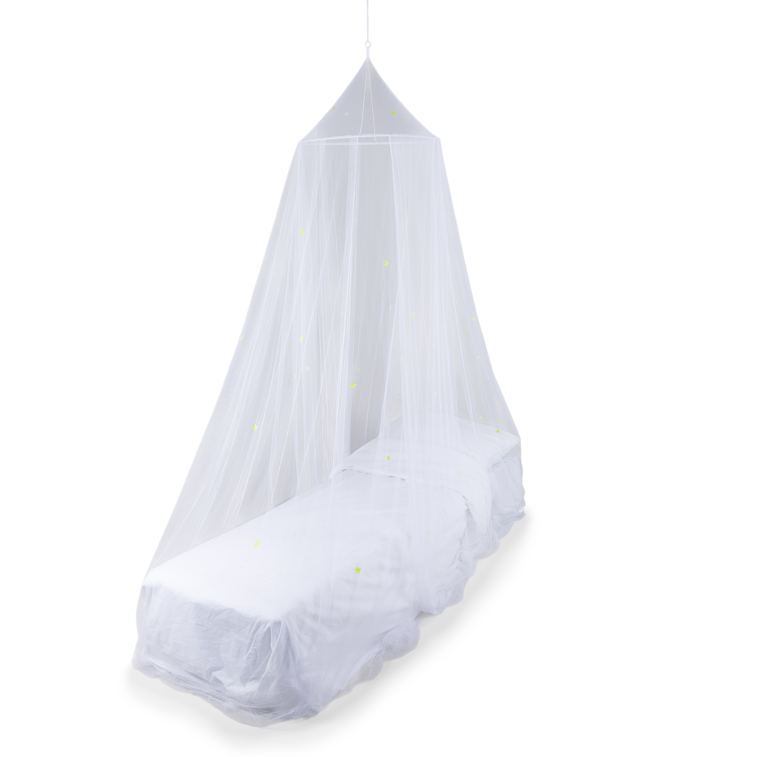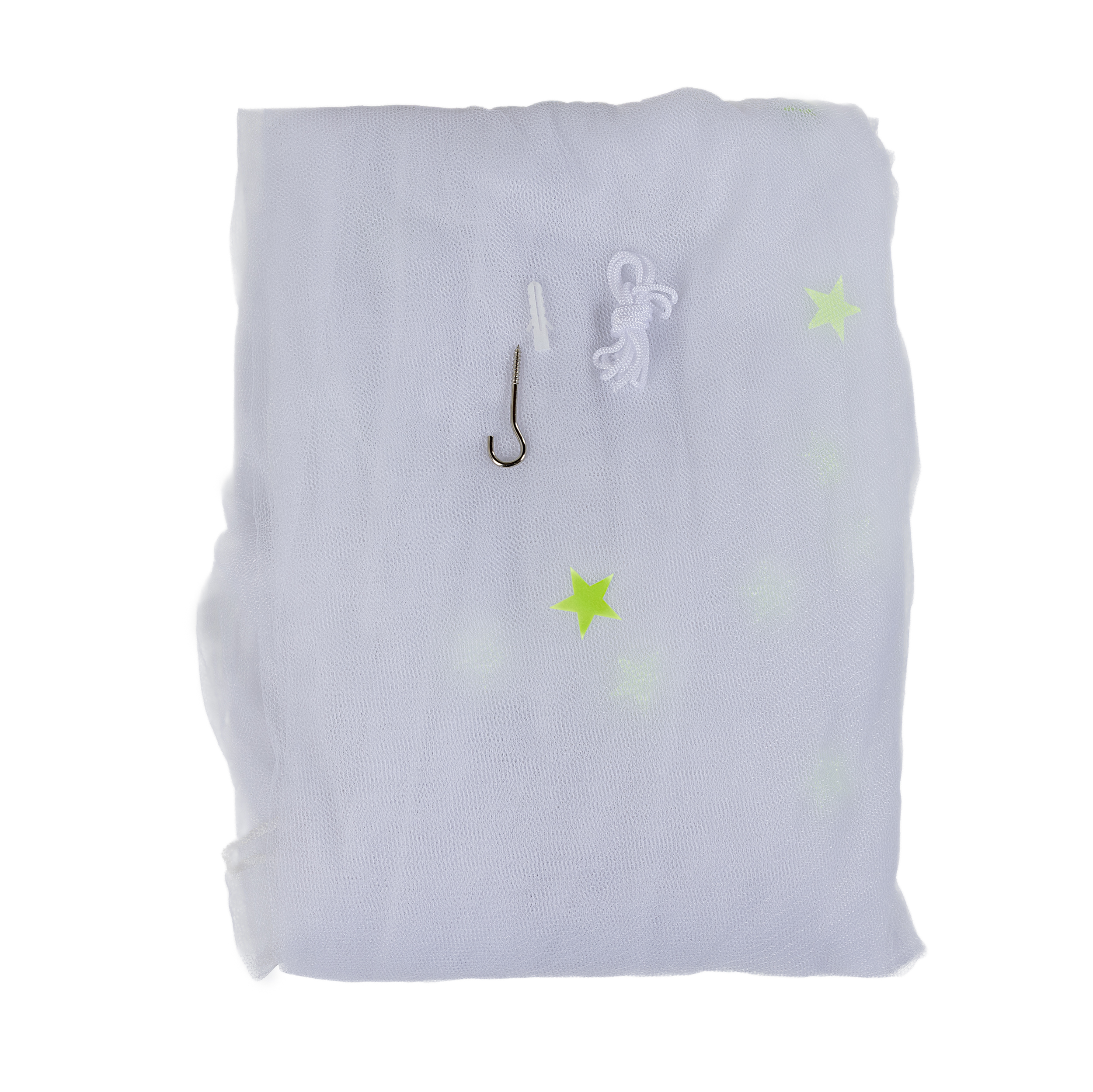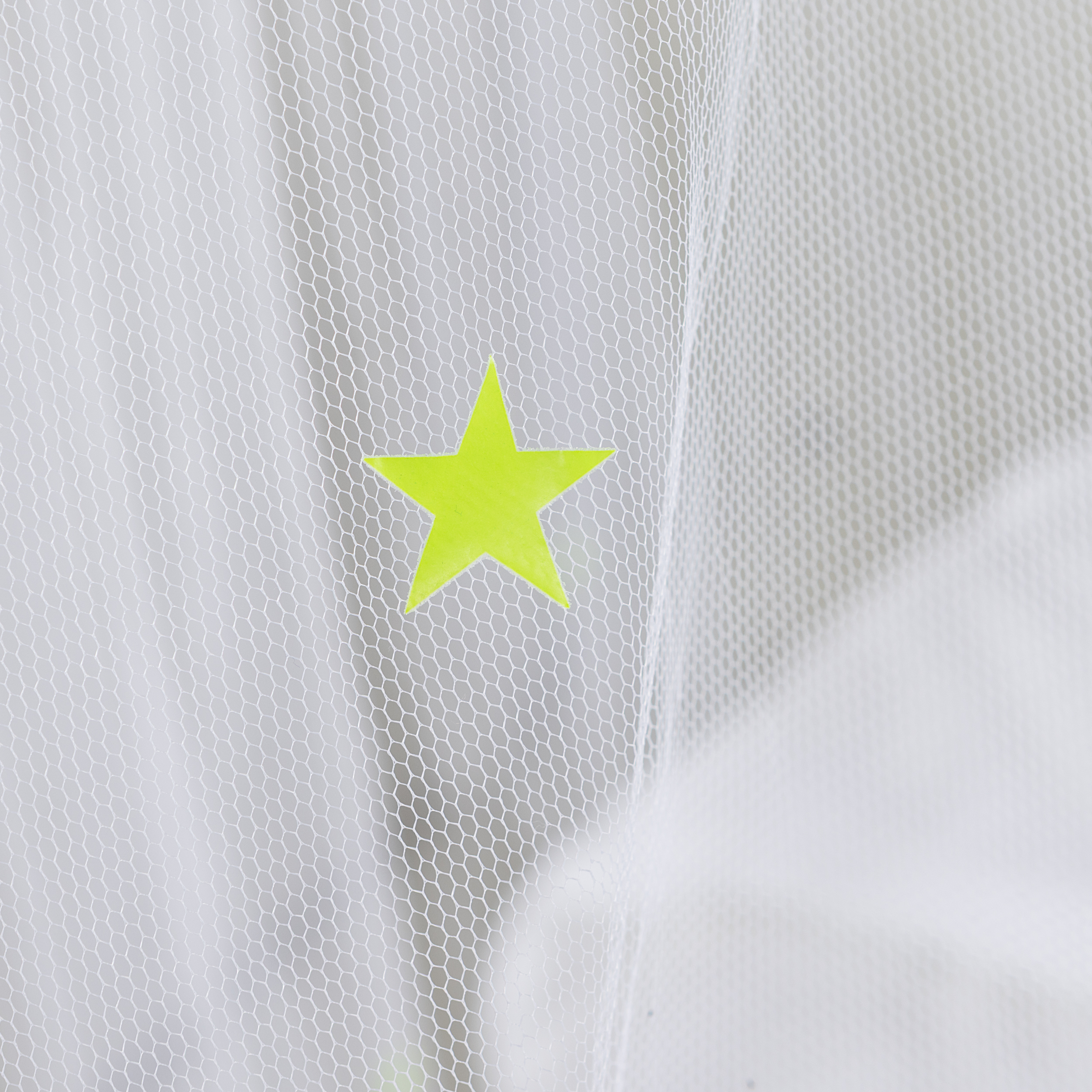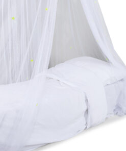 De Breeze Sereno Stars Klamboe met Glow-in-the-Dark sterren combineert effectieve muggenbescherming met een sfeervol design. Deze witte klamboe is voorzien van subtiele glow-in-the-dark sterren die ’s avonds zacht oplichten en zorgen voor een rustgevende sfeer in de slaapkamer of kinderkamer.