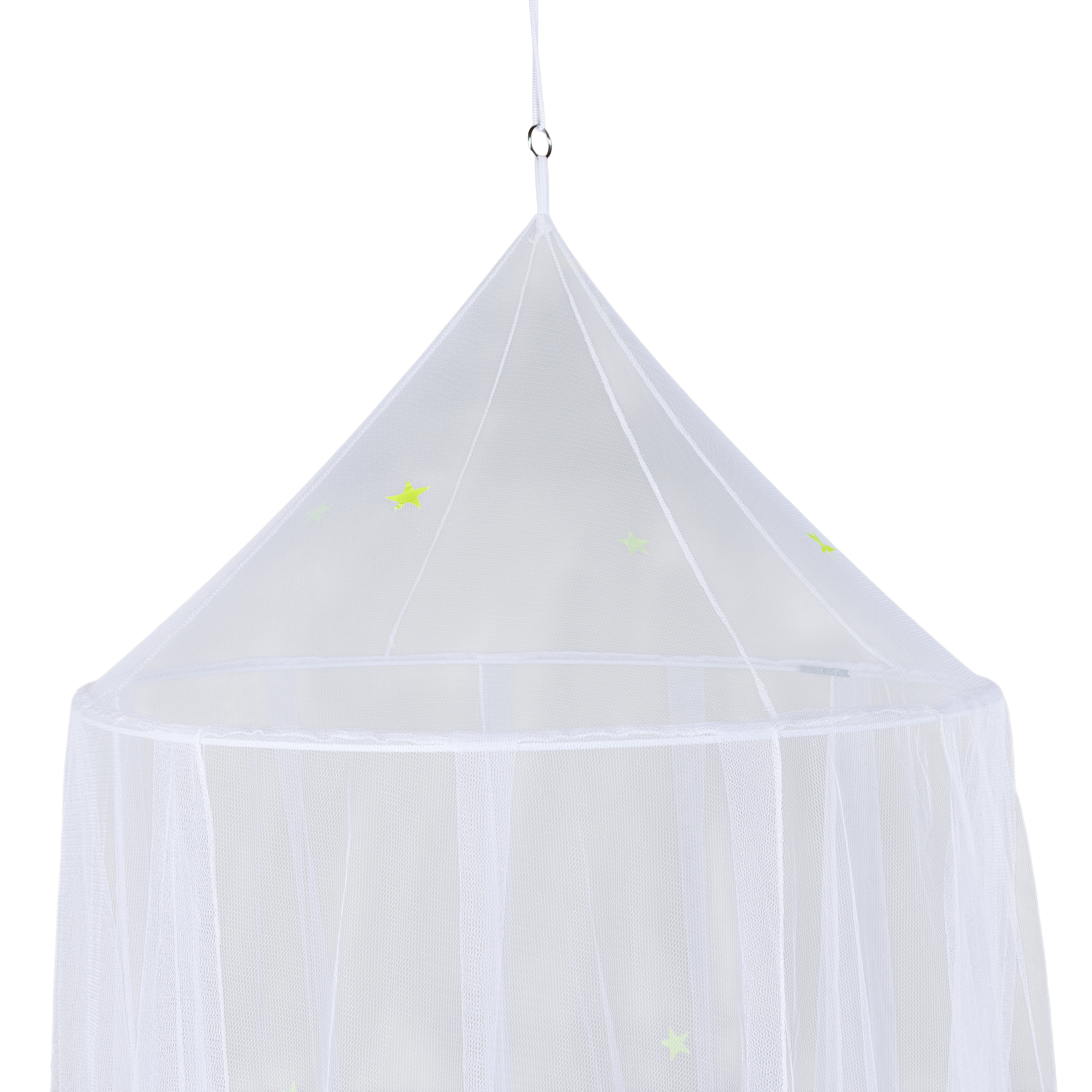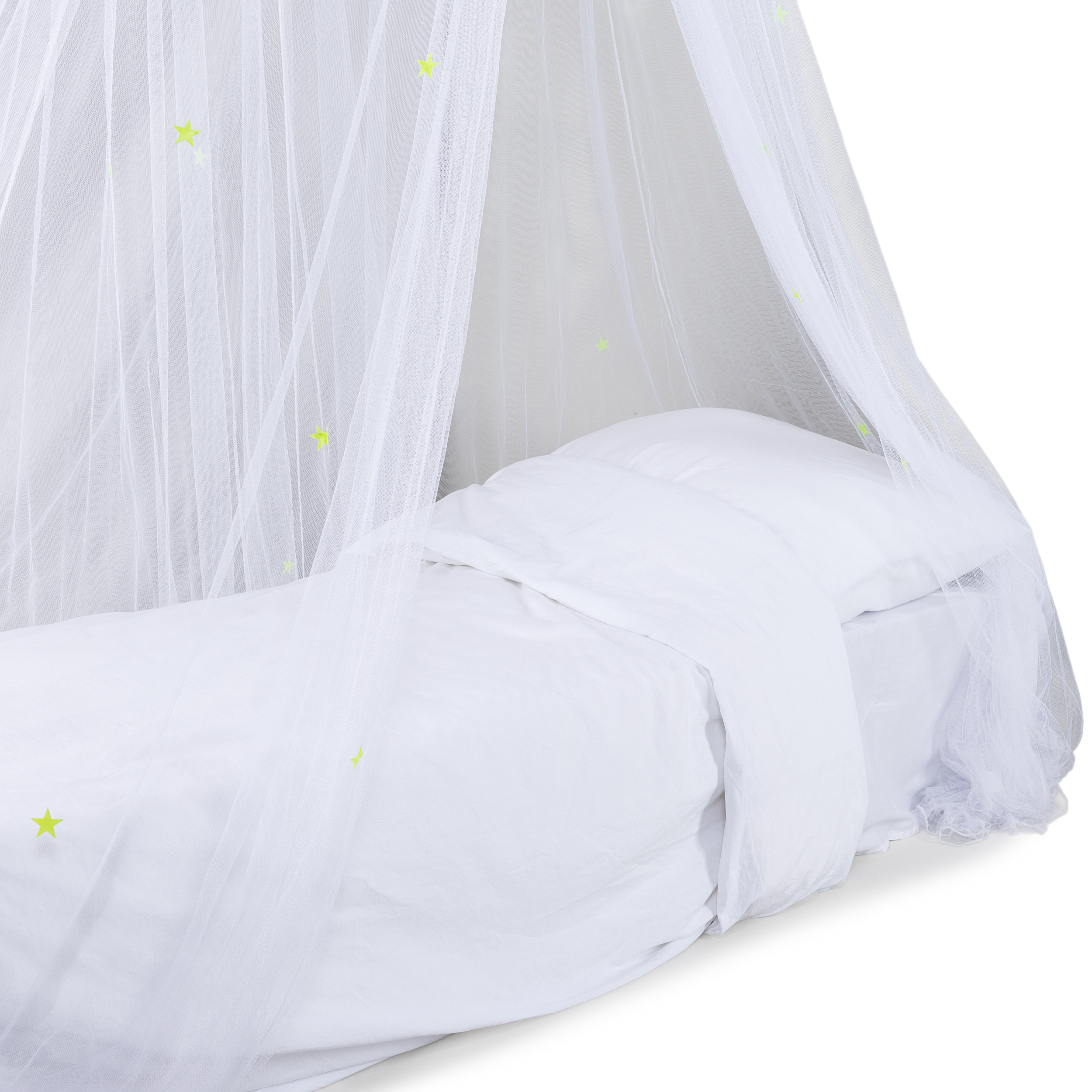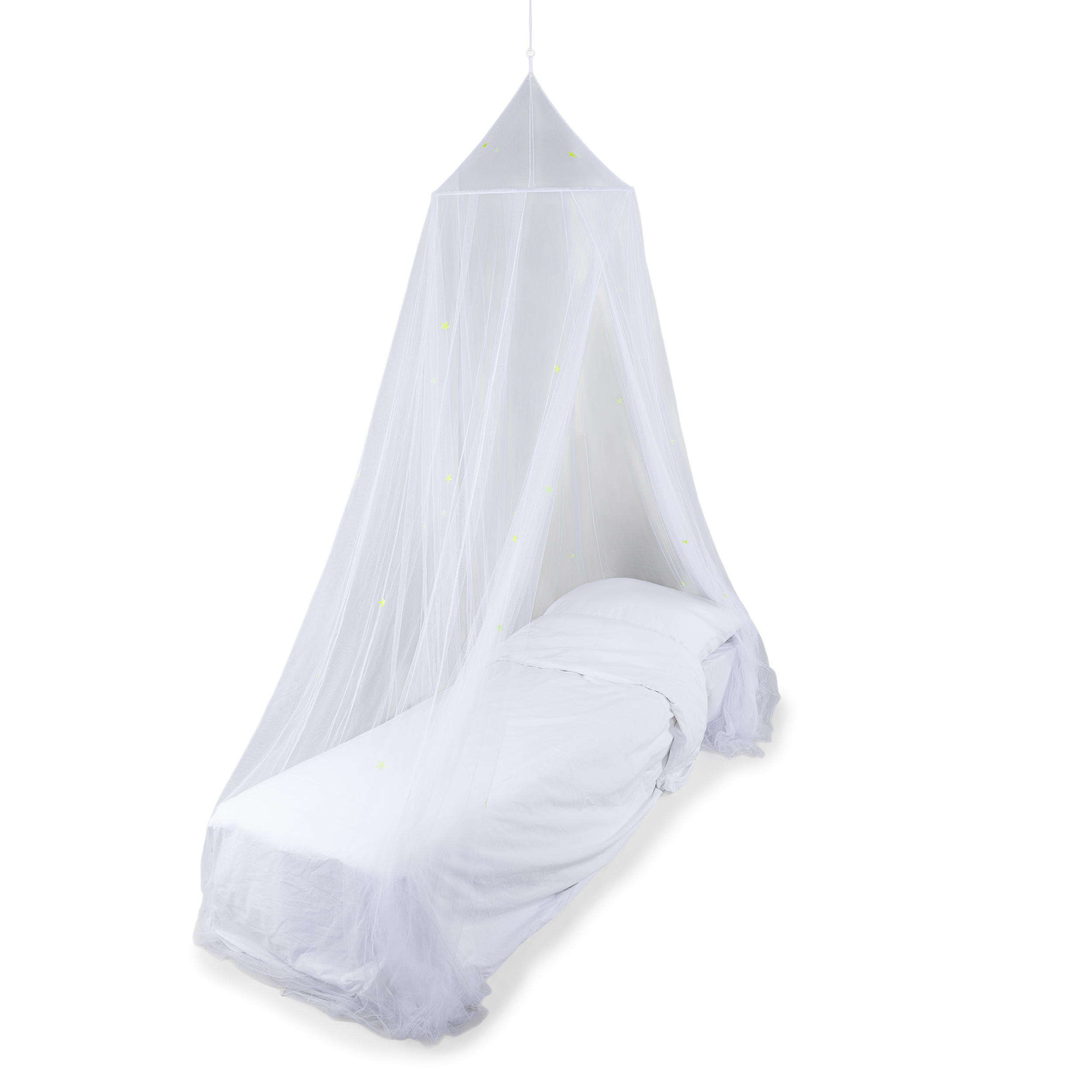 De fijne mesh met 156 gaatjes per inch houdt muggen en andere insecten buiten, terwijl lucht vrij blijft circuleren voor een comfortabele nachtrust. Dankzij de ruime omtrek van ca. 11 meter valt de klamboe mooi rondom het bed.