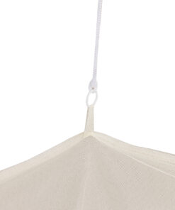 Onze polyester klamboes zijn een handgemaakt van een gladde, lichte en duurzame stof. Het voelt zacht aan en het is heeft een mooie lichte glans. Bovendien zijn polyster klamboes vormvast, behouden ze hun kleur goed en gaan ze lang mee. Deze stof is op 30 graden wasbaar en heeft een maaswijdte van 256 gaatjes per vierkante inch. De WHO adviseert minimaal 156 mesh dus de muggen krijgen jou niet te pakken met onze klamboes omdat onze ATTICK klamboe kleinere gaatjes heeft.
