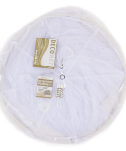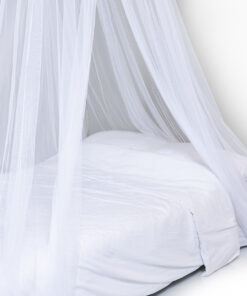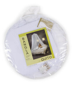 Deconet Bangla in de kleur WIT, is al jaren een favoriete klamboe door zijn fijne omtrek van 1250 cm, met een topring van 65 cm en een hoogte van 250 cm. De Bangla is verkrijgbaar in verschillende kleuren zodat er altijd een kleur te vinden is die past bij jouw slaapkamer.