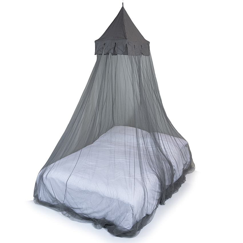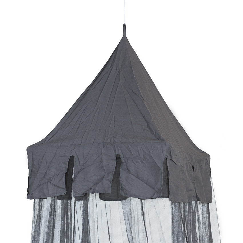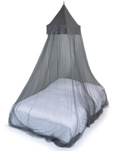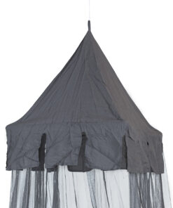 Deconet klamboe model Castle, kleur GRIJS, met een fraai katoenen dakje met decoratieve kantelen slaap je zorgenloos zonder vervelend gezoem en geprik van muggen.