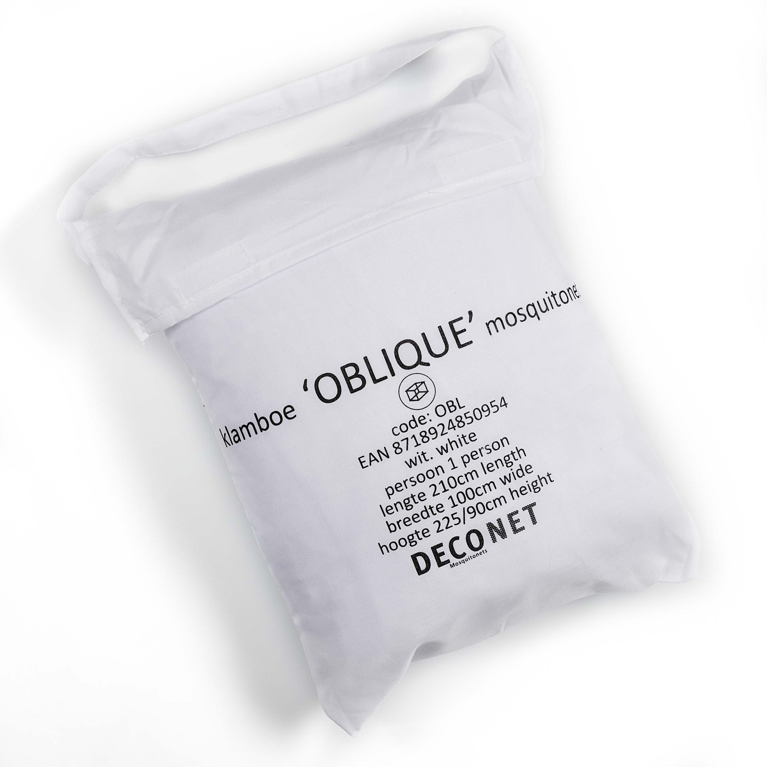 Deconet klamboe OBLIQUE – WIT- L210cm x H120cm én H200cm x B100cm 1 pers deze klamboe is uniek en en speciaal ontworpen voor een schuin dak, vliering, mezzanine of zolder.
