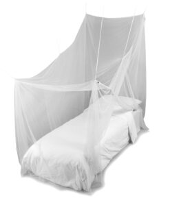 Onze polyester klamboes zijn een handgemaakt van een gladde, lichte en duurzame stof. Het voelt zacht aan en het is heeft een mooie lichte glans. Bovendien zijn polyster klamboes vormvast, behouden ze hun kleur goed en gaan ze lang mee. Deze stof is op 30 graden wasbaar en heeft een maaswijdte van 256 gaatjes per vierkante inch. De WHO adviseert minimaal 156 mesh dus de muggen krijgen jou niet te pakken met onze klamboes omdat onze LOFT klamboes kleinere gaatjes heeft.