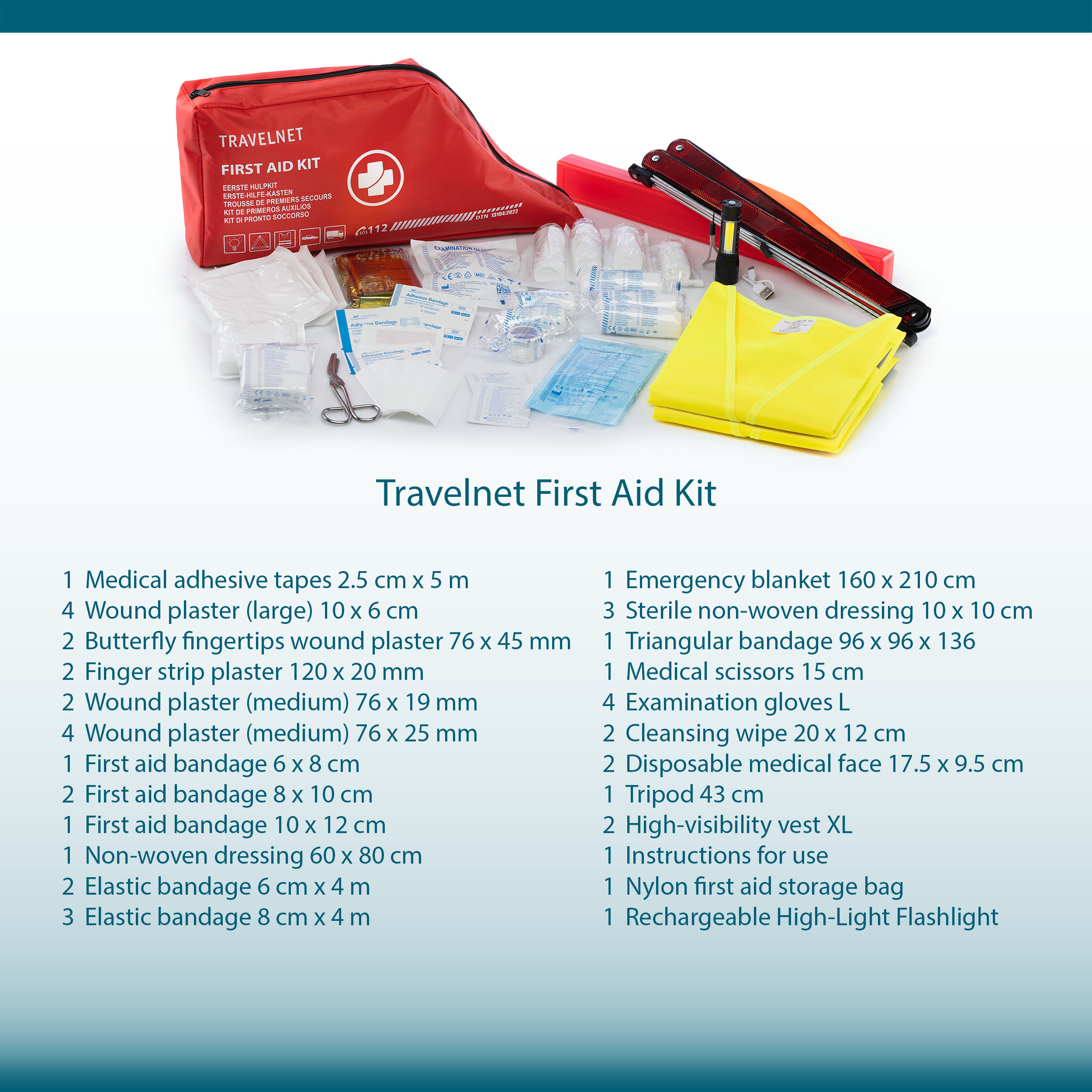 Inhoud Travelnet EHBO Verbandkit Auto;