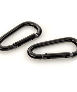 Zodra je de bevestigingbanden op de juiste hoogte hebt gezet dan steek je de meegeleverde karbijnhaak door een van de lussen en de hangmat.