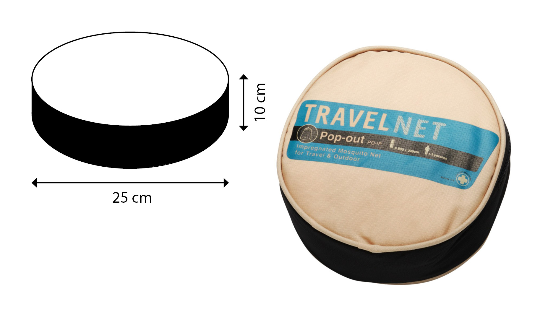 Travelnet POP-Out klamboe, geimpregneerd, is voor de reiziger die licht en compact wil reizen. Het ronde model heeft een pop out ring die openklapt voor een goed nachtrust. De POP-Out I klamboe van Travelnet is voor als je licht en compact (< 500gr) wilt reizen, ideaal voor rugzak- en wereldreizigers.