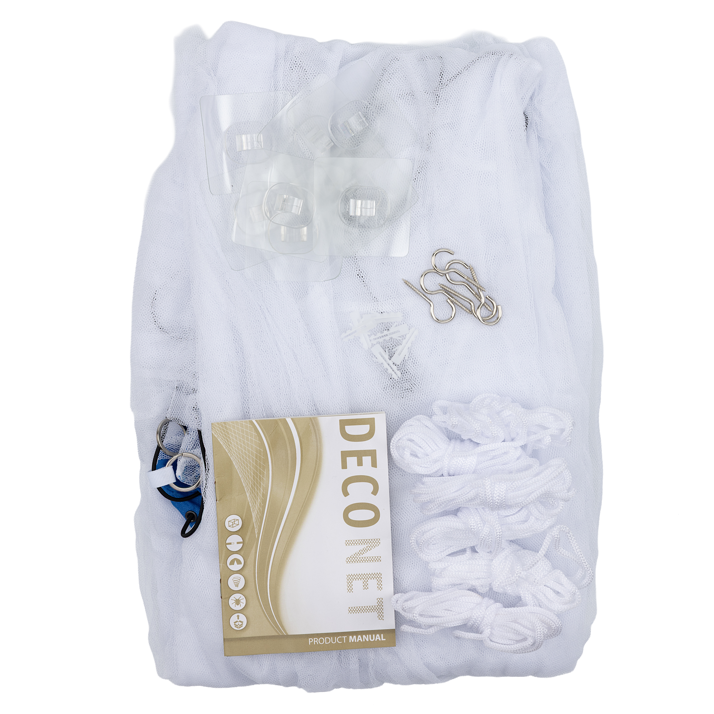 Er worden bevestigingsmaterialen meegeleverd en een handige opbergtas zodat je de klamboe schoon en veilig kan op bergen voor de volgende locatie of reis.