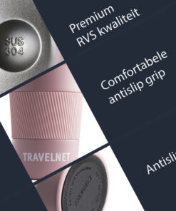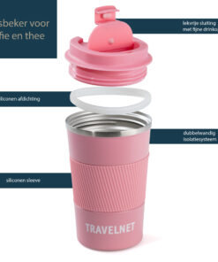 De reisbeker is gemaakt van 304 roestvrij staal, dat hittebestendig, krasvast en gemakkelijk te reinigen is.